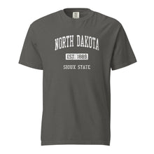 Looking for a garment-dyed heavyweight North Dakota t-shirt with a unique, classic, vintage, old-school, worn and distressed design?