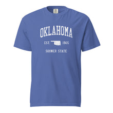 Looking for a garment-dyed heavyweight Oklahoma t-shirt with a unique, classic, vintage, old-school, worn and distressed design?