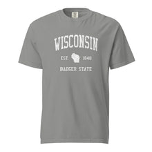 Looking for a garment-dyed heavyweight Wisconsin t-shirt with a unique, classic, vintage, old-school, worn and distressed design?